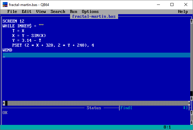 If OpenWindow(0, 0, 0, 640, 480, "Barry Martin fractal", #PB_Window_SystemMenu | #PB_Window_ScreenCentered)